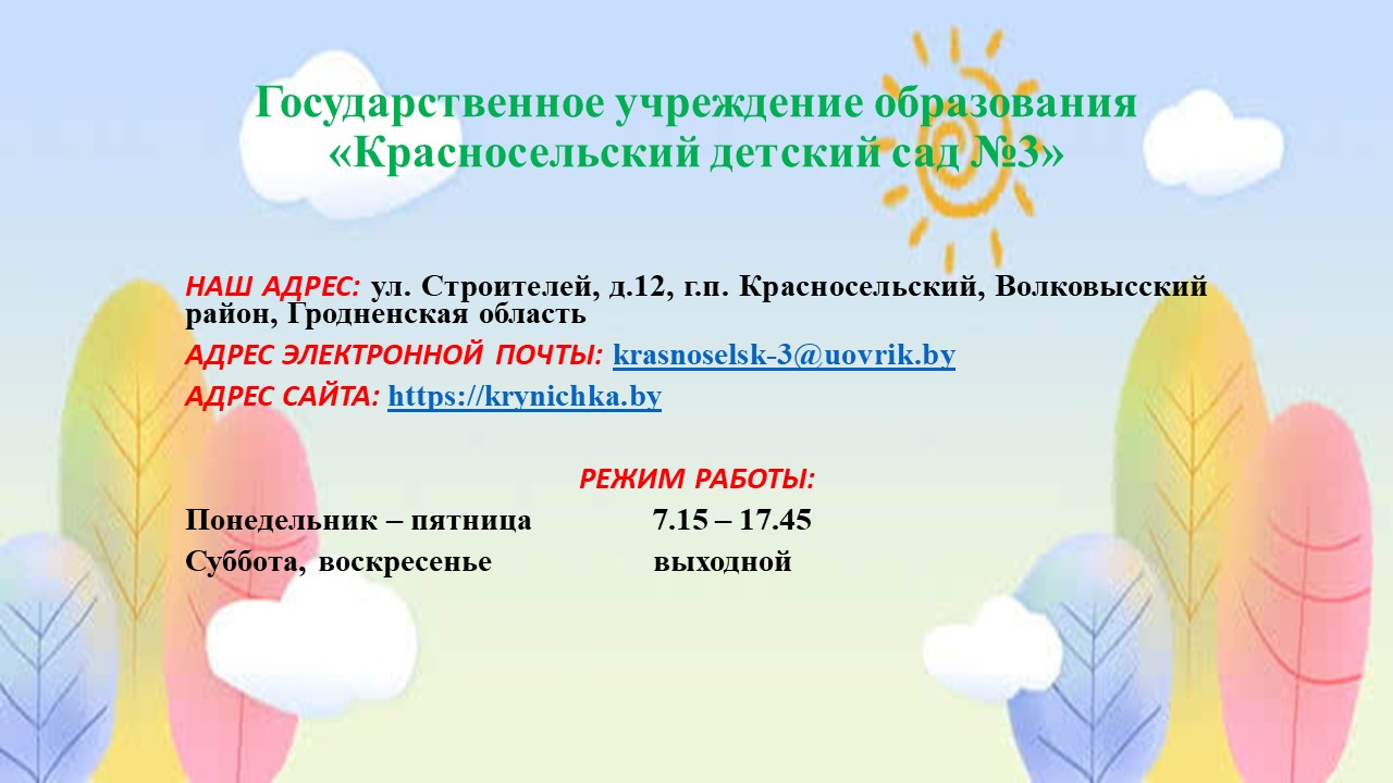 Государственное учреждение образования "Красносельский детский сад №3"